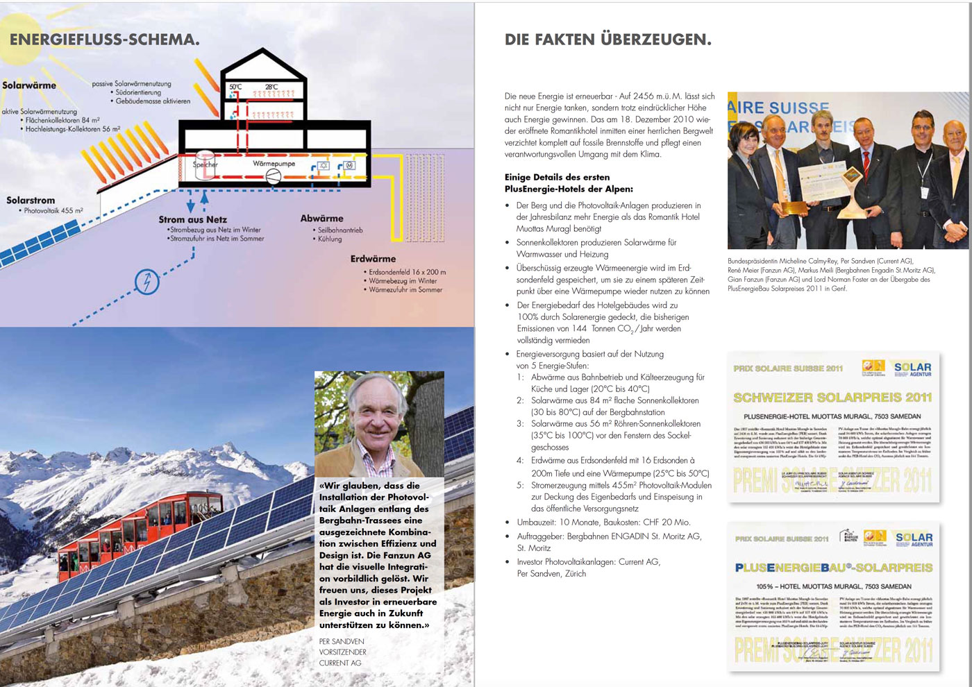 Sandven und Fanzun haben bereits in der Vergangenheit zusammengearbeitet, unter anderem beim 105%-PlusEnergie-Hotel Muottas Muragl in Samedan, das auch einen Solarpreis erhalten hat. Ihre Zusammenarbeit spiegelt das gemeinsame Engagement und die Vision wider, den Übergang zu einer nachhaltigeren und CO2-neutralen Energiezukunft zu beschleunigen. Aktuell sind bei der Fanzun AG weitere Projekte im Bereich von hochalpinen Solaranlagen, dem sogenannten «Solarexpress», in Planung.